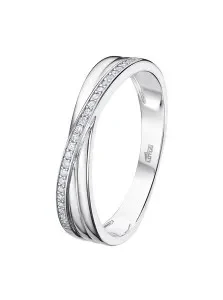 Anillo Media Alianza en Carril Cruzado de Plata y Circonitas LP3447. Talla 14