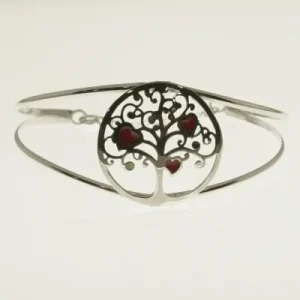 Pulsera Brazalete Grande Árbol de la Vida con Esmalte Corazones Rojo