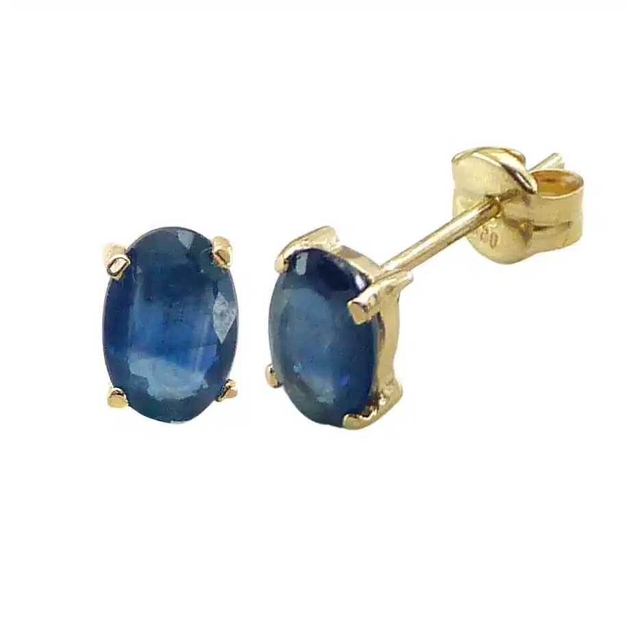 18K | Pendientes oval 6x4mm 1.06 Ct zafiro cierre presión.