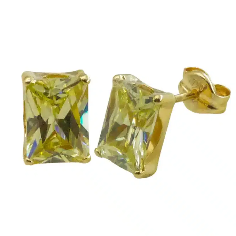 18k | Pendientes piedra baguette color citrino de 6x4mm.
